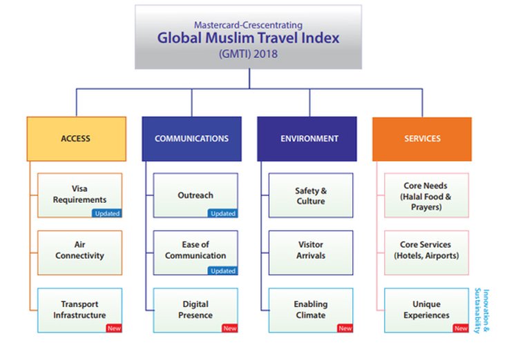 The launch of the Mastercard-Crescentrating Global Muslim Travel Index (GMTI) for the year 2018 saw the introduction of four new criteria and the update of three existing indicators into its ACES measurements (Access, Communications, Environment, Services).